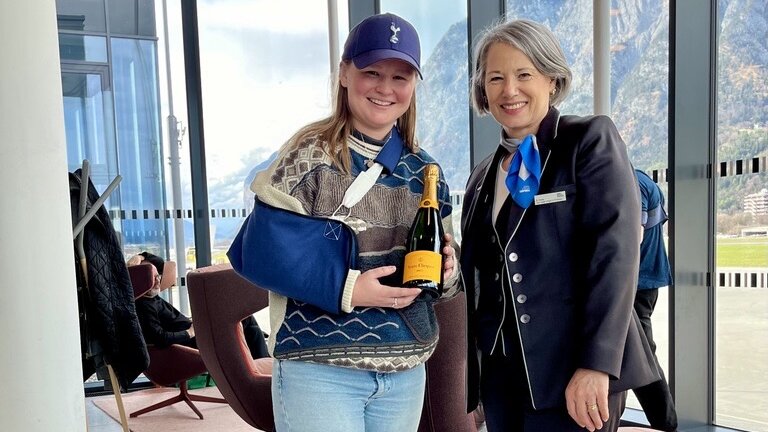 Am 10. März durften wir Maria als unseren genau 200.000sten Gast willkommen heißen. Vor ihrem Transavia-Flug nach Eindhoven gönnte sie sich einen Besuch in der Lounge und wurde von der Teamleiterin Birgit persönlich begrüßt und mit einem Geschenk überrascht.