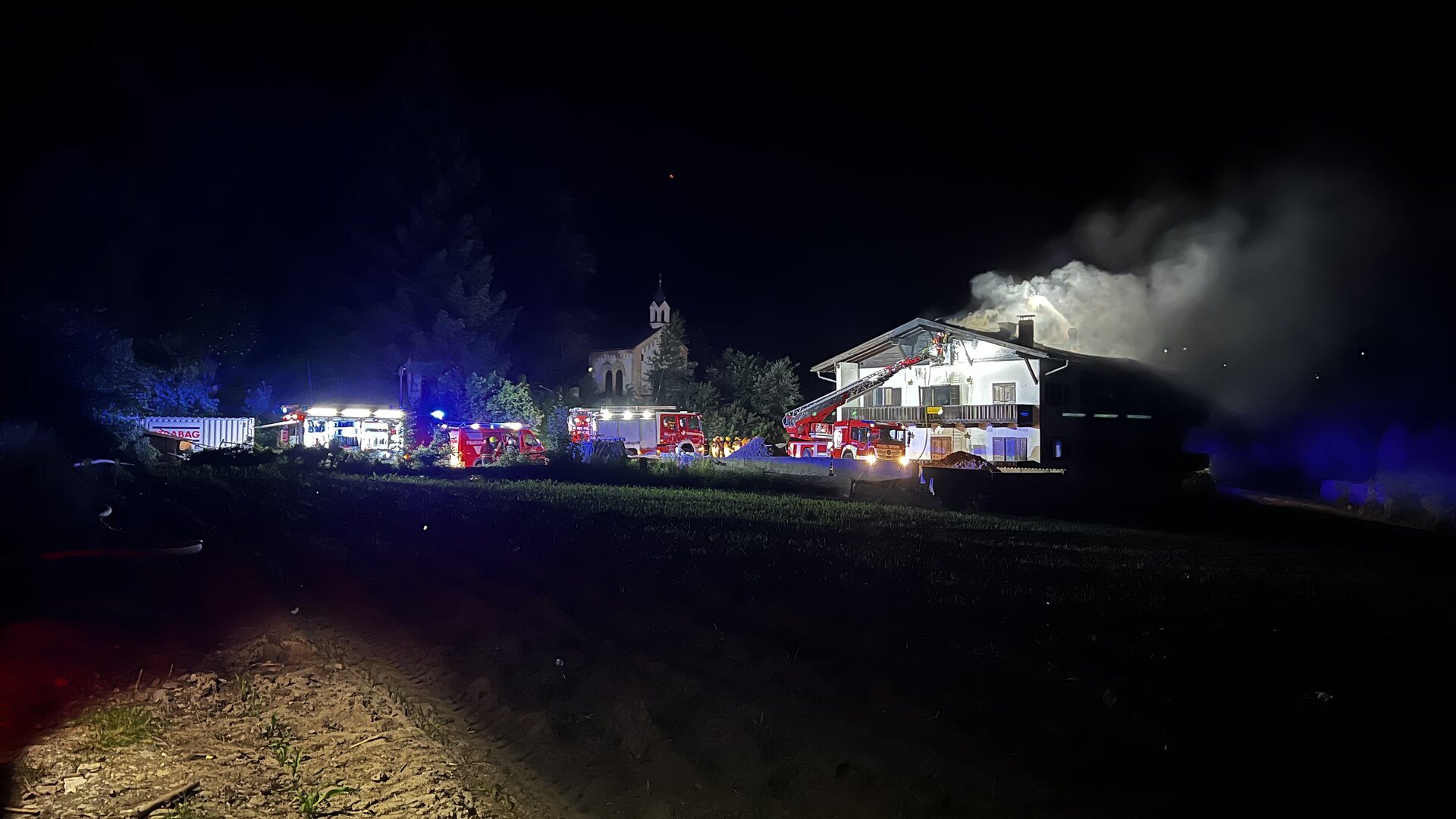 In der darauffolgenden Nacht kam es zu einem weiteren Unterstützungseinsatz im Rahmen eines Großbrandes in Innsbruck - Vill (Pension Pembaurhof). Auch hier waren das 9000l-Löschfahrzeug sowie 2 Mann vor Ort im Einsatz.